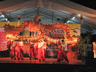 天公不做美,昨夜大雨过后就来个细雨绵绵下不停。人潮自然少了,但还是大塞车可能槟岛太小吧!很遗憾的是很多节目也被腰斩了,如舞狮上庄被取消,花车游行也落得些许狼狈,大部分的队伍散的散,跑的跑直到最后雨点小了才勉强绕着草场转一圈,还有一些小孩提灯笼不过那时台上节目精彩也没有太多人去理睬。